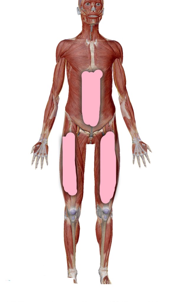 (だいたいこのピンクのエリアが腹直筋と大腿四頭筋です)