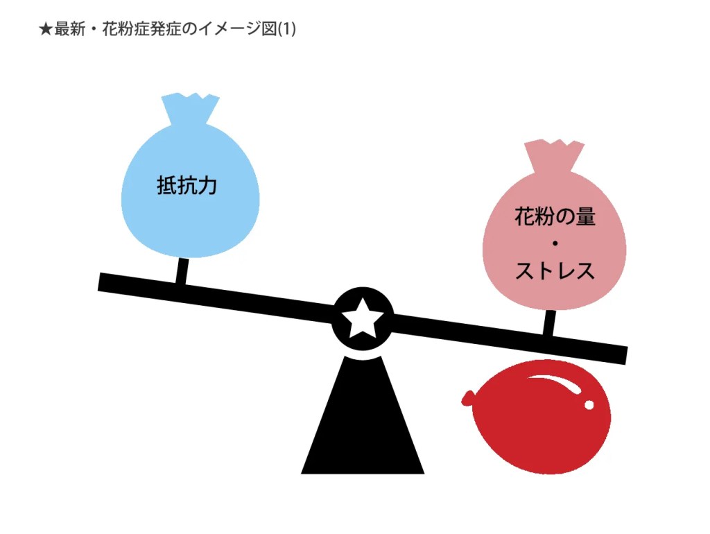そして花粉やストレスが反対側の抵抗力に比べて重くなるとバランスを崩して