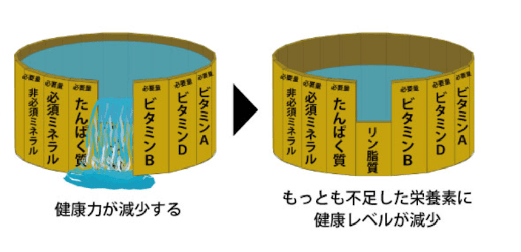 (どれか一つでも少ないミネラルがあれば、少量のミネラルに合わせた働きしかできない。)