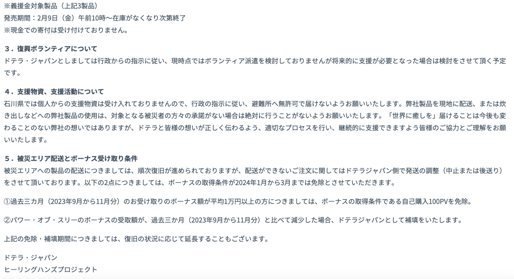 ドテラ・ジャパンヒーリングハンズプロジェクトは被災地援助としまして、以下の支援を決定いたしました。