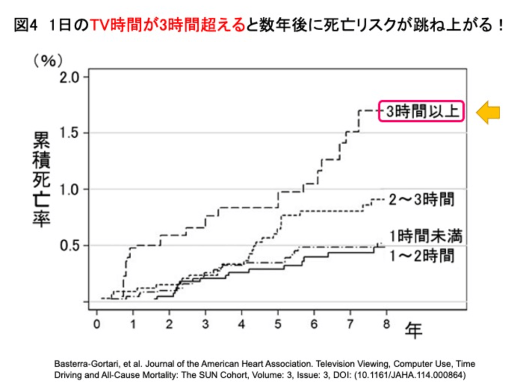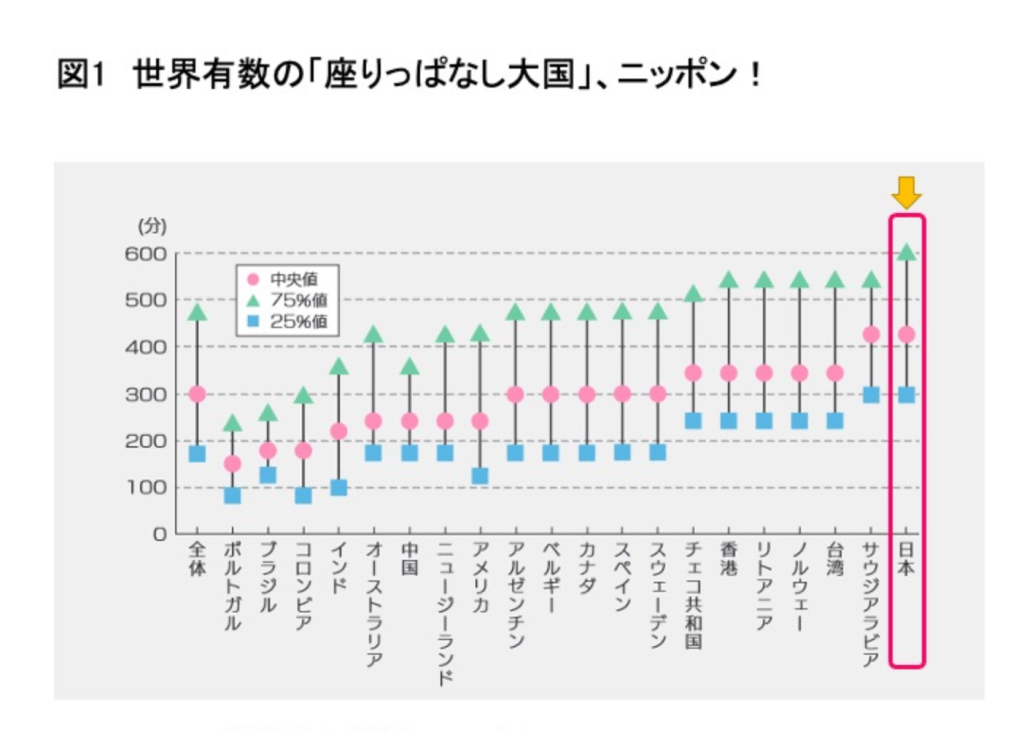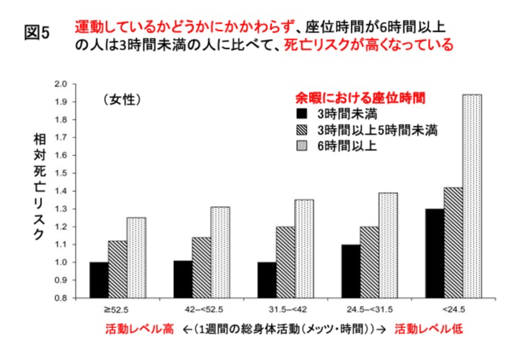 『1日の中で座っている時間が長ければ長いほど死亡リスクが上がり健康被害が増えるよ』