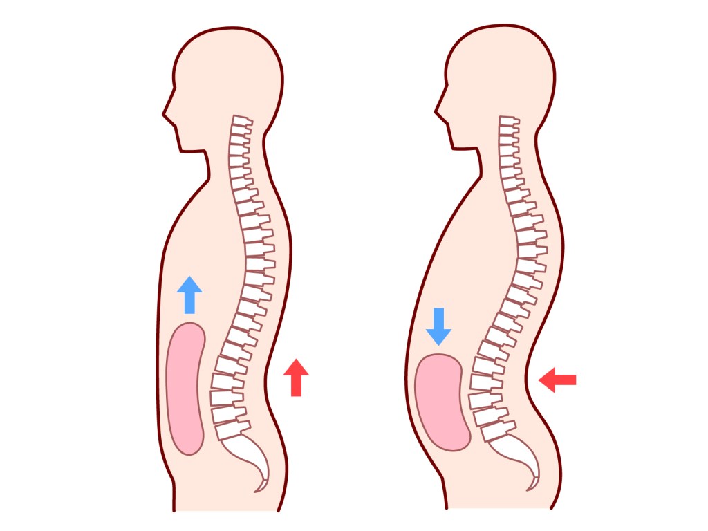 ・お腹を前へ突き出すような姿勢になるので、内臓は下がる