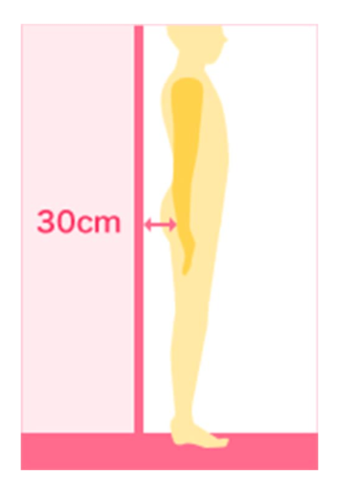 ①まず、壁の前に30センチほど壁から離れて立ちます。