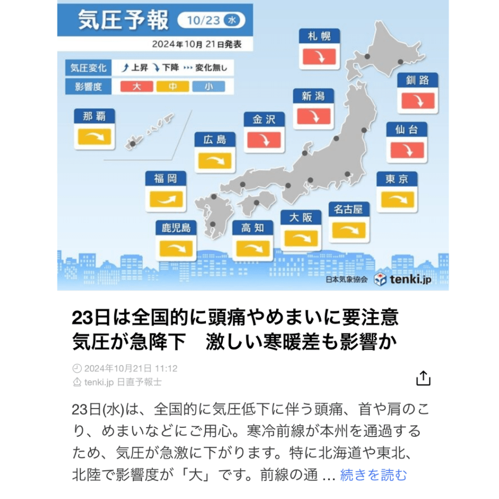 全国的に気圧が急降下⤵️⤵️⤵️