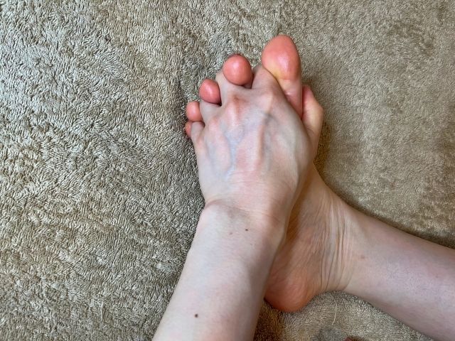 足の指同士で握り合って