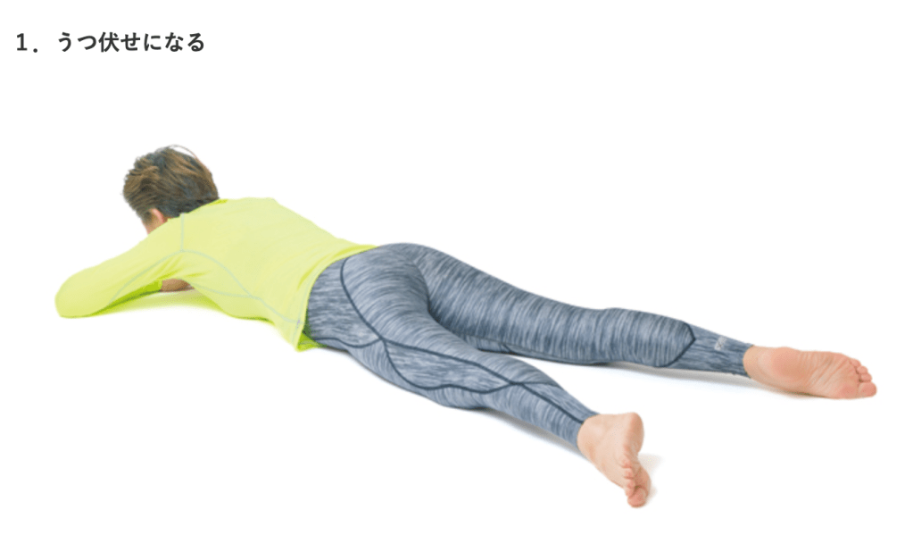 うつ伏せに寝転がる