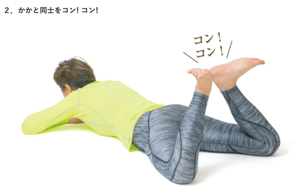 膝を曲げかかと同士を「コンコン」