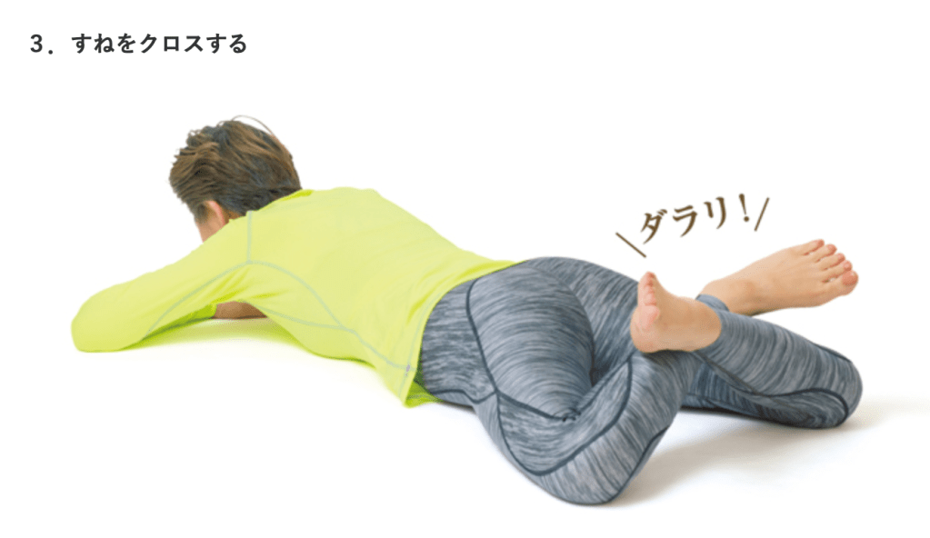 うつ伏せになり片方の足の膝を