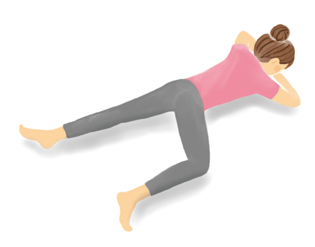 お尻が浮かない程度のところで30秒キープします(左右行いましょう)