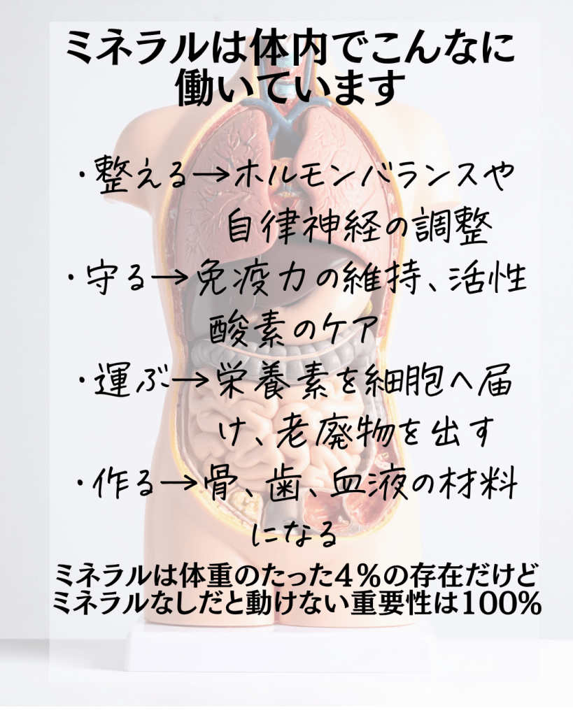 ミネラルは体内でも忙しく、大活躍✨